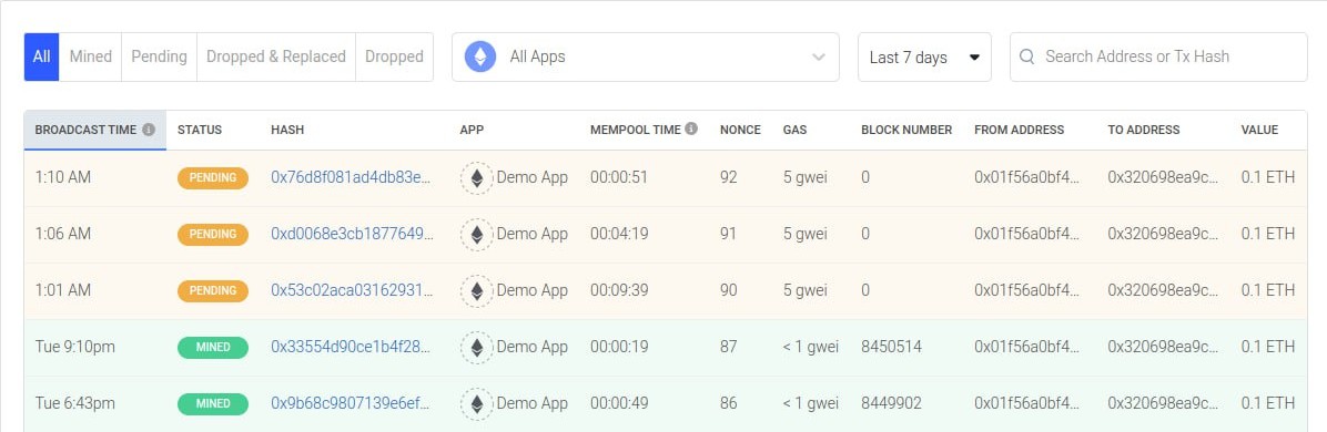 nonce 作為 Transaction 的唯一識別數字,可以使用它