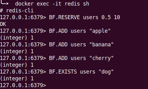 有關 Bloom Filter 的指令可以參考 BF