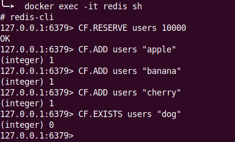 有關 Cuckoo Filter 的指令可以參考 CF