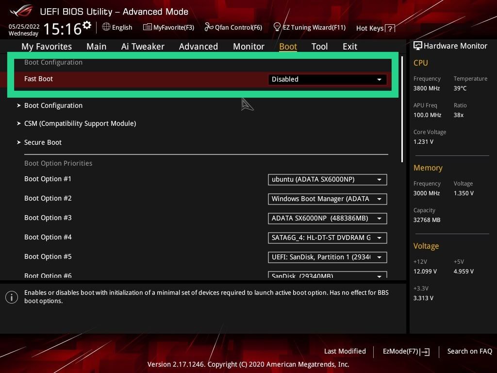 注意到這裡的 Fast Boot 跟 windows 內建的快速啟動不一樣