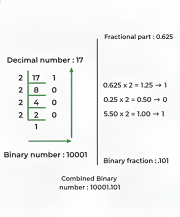 數字 8.5(10) 的二進位表示法是 1000.1(2)