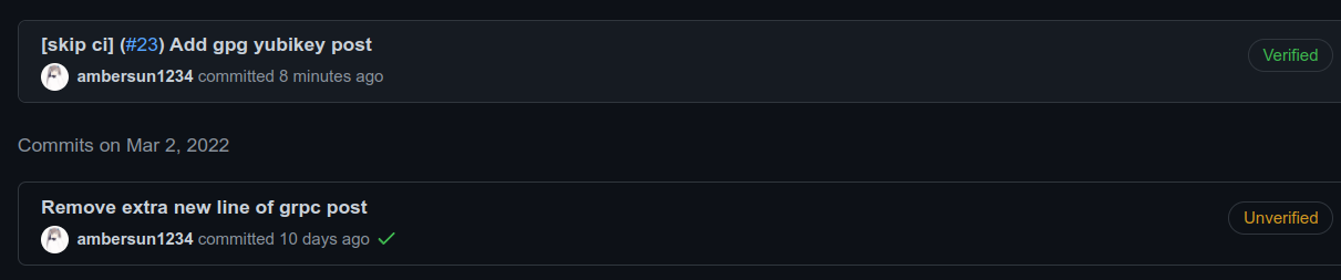 有經過認證的,在 commit 旁會看到 Verified 字樣