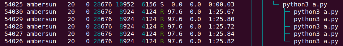 透過 tree view 我們可以確認其 parent-child 的關係 證明了 multiprocessing 是透過 subprocess 的方式做到 parallel 的