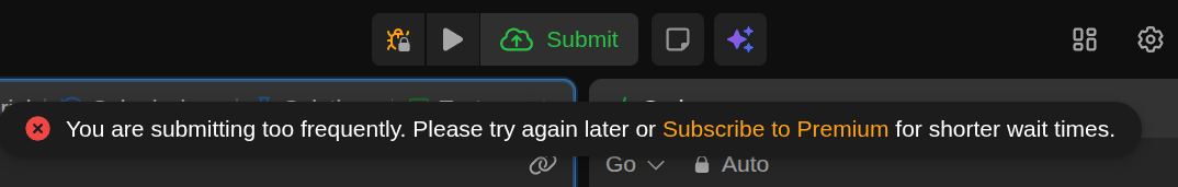 比方說,像是 LeetCode 如果你太頻繁的 submit code, 它會跟你說你需要升級成 premium 會員才能如此頻繁的提交